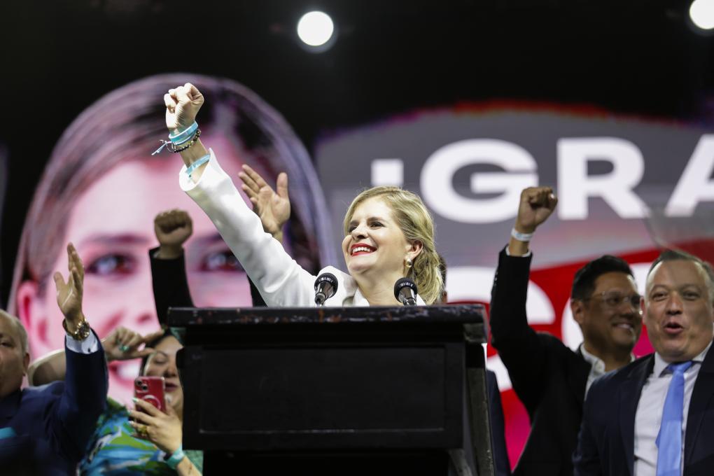 1 февраля, Сан-Хосе. Кандидат от Суверенной народной партии Коста-Рики Лаура Фернандес принимает участие в митинге по случаю своей победы на президентских выборах. /Фото: Синьхуа/