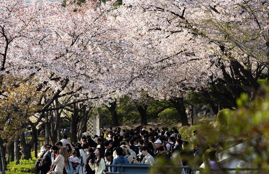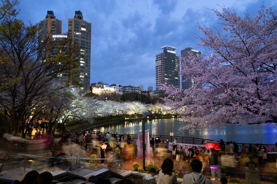 Сеул, 7 апреля /Синьхуа/ -- Сезон цветения сакуры в Сеуле сейчас в самом разгаре. Озеро Сокчхон привлекает множество людей, желающих насладиться живописными весенними пейзажами.